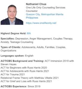 Nathaniel Chua, MA, Functional Contextualist Therapist – The Philippines’ ACT & IBCT Specialist